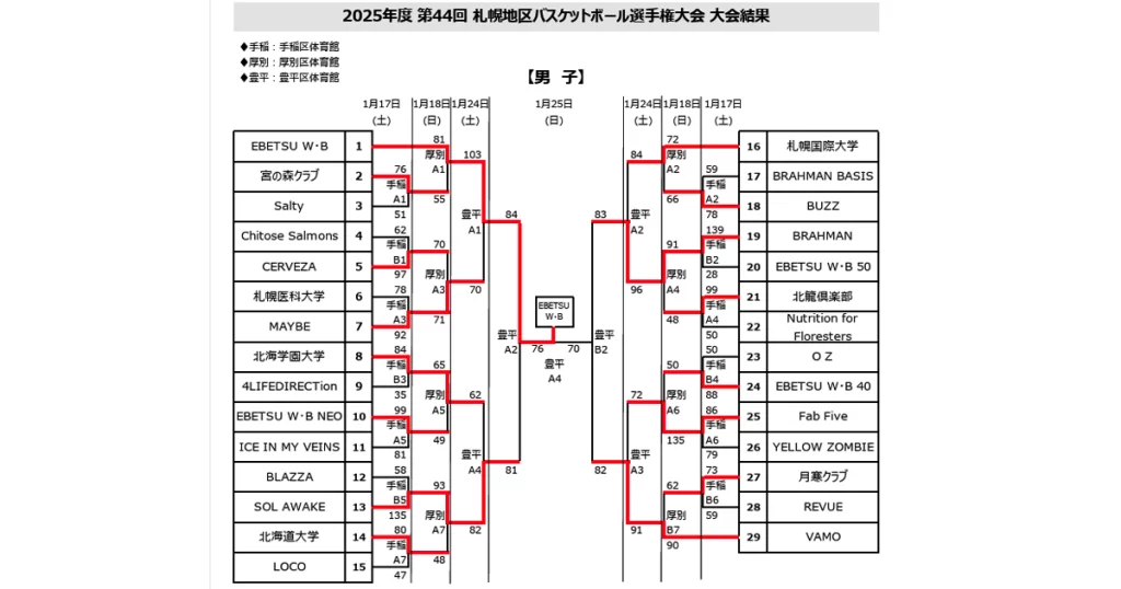 | 決勝 | BRAHMAN | 76 – 70 | 17-17 / 22-31 / 24-12 / 24-12 |